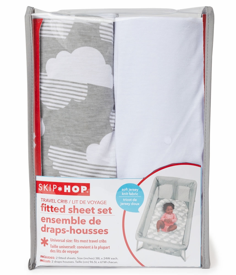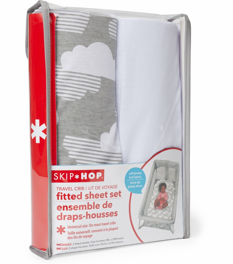 Sure to inspire sweet dreams, our travel crib sheet set is crafted from soft jersey knit fabric for baby?s comfort. The set includes two universal size fitted sheets and coordinates perfectly with your own travel crib or Skip Hop?s Play To Night? Expanding Travel Crib.