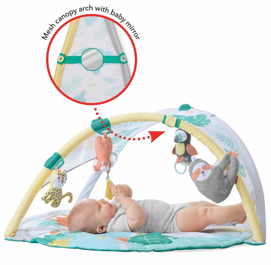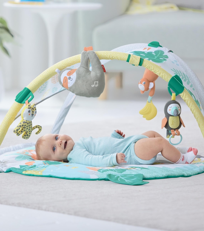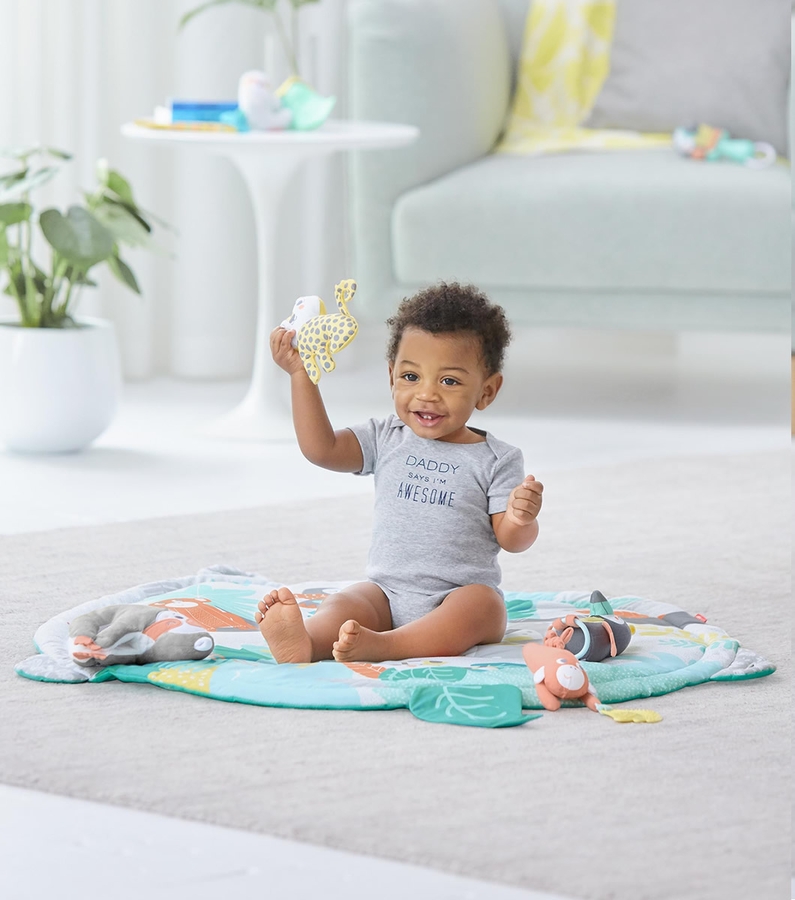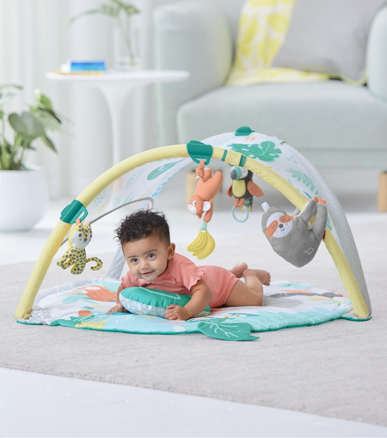 I bought it for my friend´s baby who lives in OK, I´m from Lima Peru., and we are apart so I wanted to buy a special item for Sofia, and she loves this gym! It has all the features babies love: animals, toys, bright colors! :) I fully recommend this product :D
