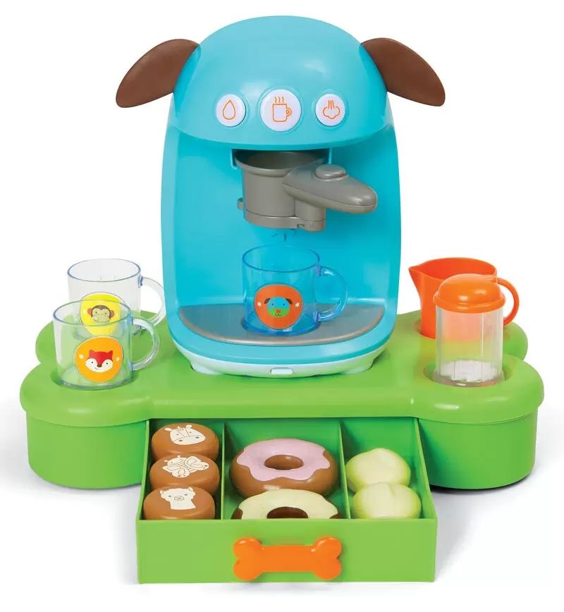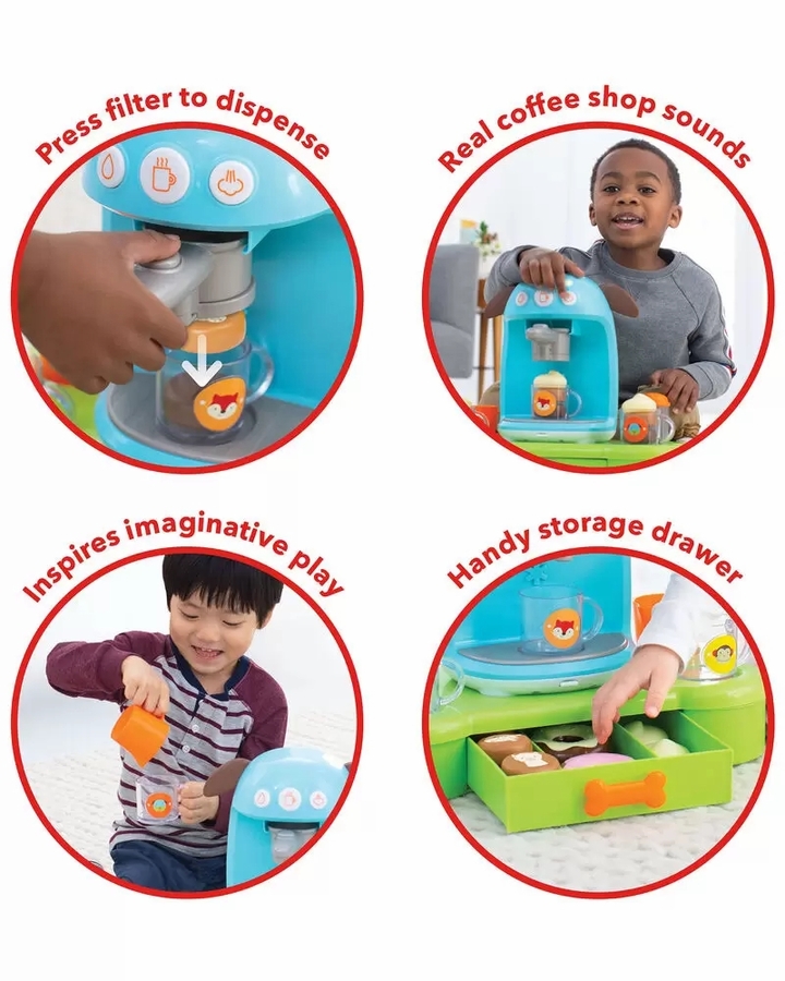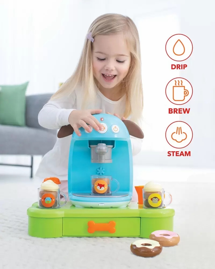 Build-your-own café treats! Loaded with a whole “latte” fun, little ones will love to make and serve yummy “drinks” like a real barista with this doggone cute set. A fill & drop filter, real coffee shop sounds, plus all the extras make this 20-piece set a perfect pick for pretend play.