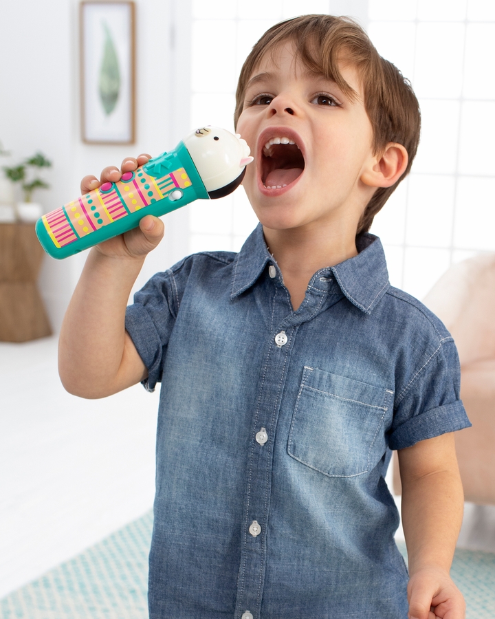 My daughter is obsessed with this skiphop microphone! Not only is it very cute, but it is well made as well. She's rough with her toys; this microphone has survived many drops and bumps. It has three catchy songs she plays and sings along with. When she talks into it, it sounds like a real microphone. I hear he little amplified voice all around the house. Hours of fun, big hit in our house.