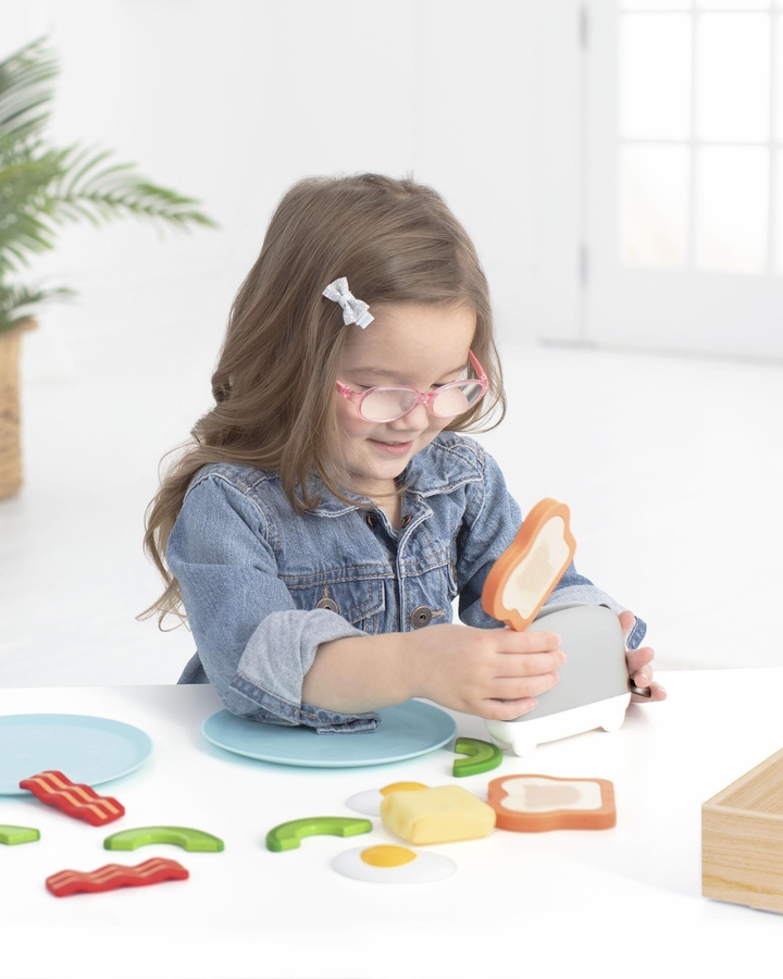 - 16-piece set includes: Pop-Up Toaster, 2 Plates, 2 Bread Slices, 2 Butters, 4 Avocado Slices, 2 Eggs, 2 Bacon Strips, Serving Tray
