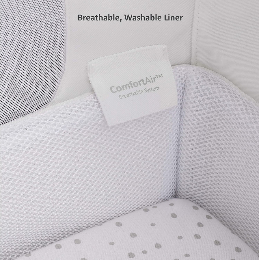 • Dual mesh windows and drop-down side for nurturing the parent-baby bond and ease of use during nighttime routines