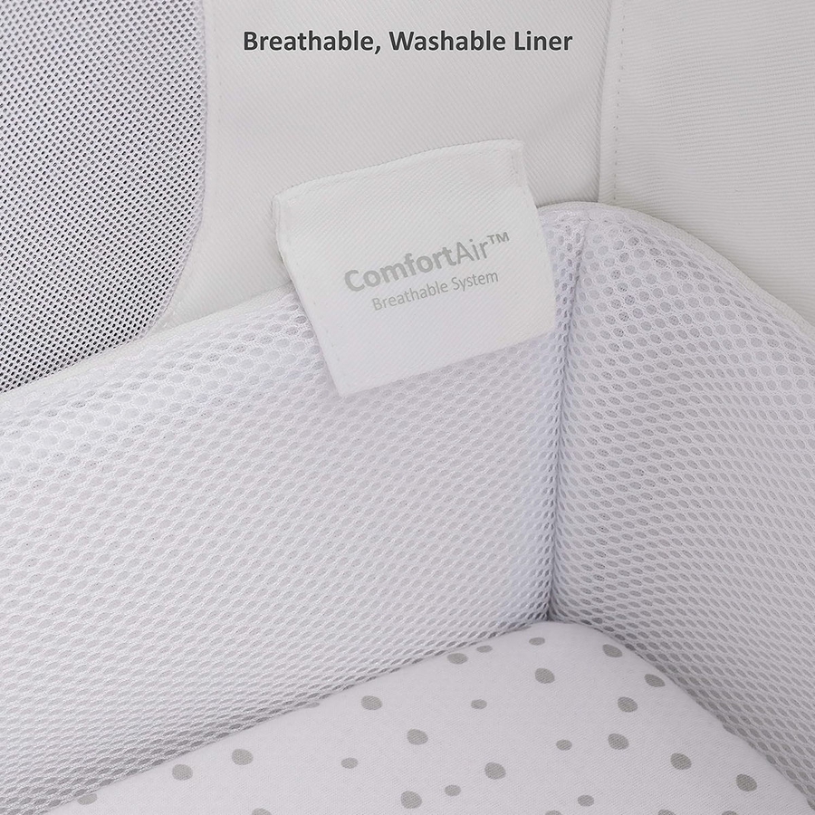 • Dual mesh windows and drop-down side for nurturing the parent-baby bond and ease of use during nighttime routines