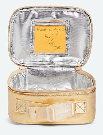 • A variety of snacks, a kid's sized water bottle, and an apple