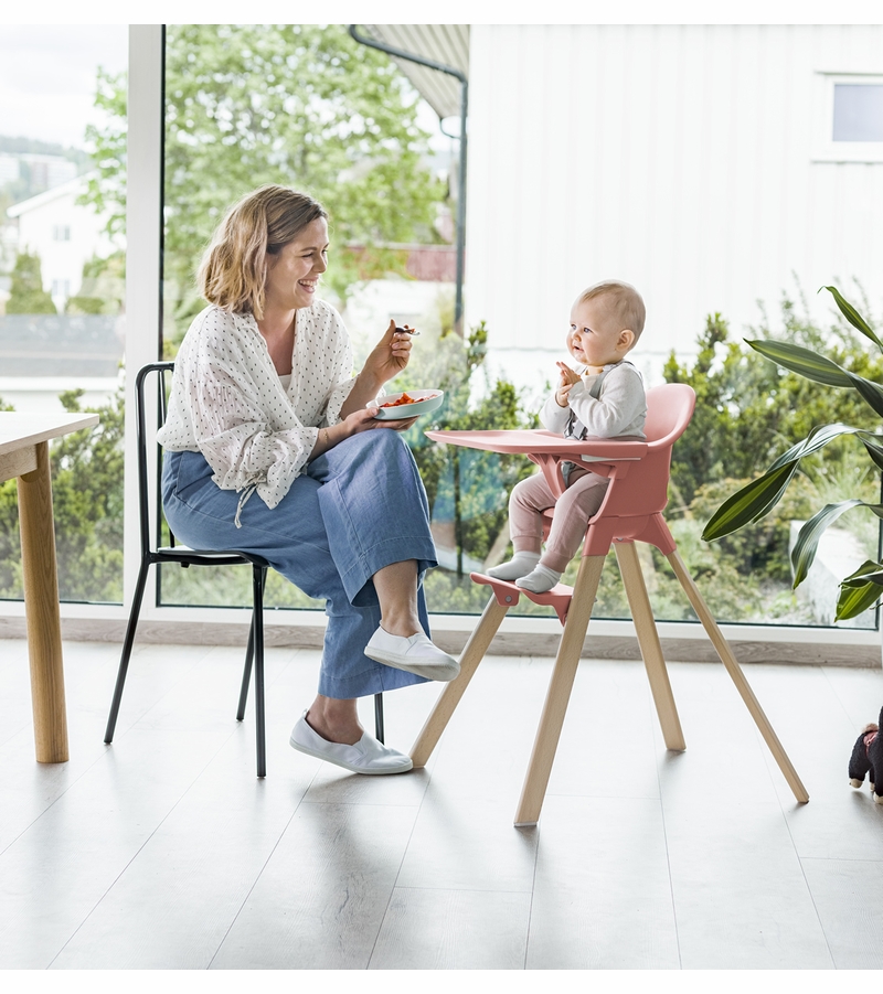 The Stokke® Clikk™ high chair takes away the fuss of mealtime. Clikk's High-quality & functional design lets families focus on bonding at mealtime. It allows for natural movements and supported exploration as your baby learns and develops alongside you. Smooth lines from top to bottom make it quick to wipe clean before popping the tray into the dishwasher.