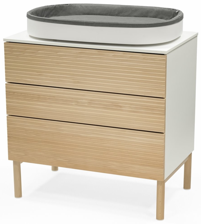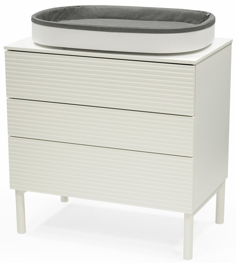 The changer can be safely used on top of the Stokke® Sleepi™ Dresser. Its protective sides and padded mattress offer a safe and comfortable environment for you to change your little one. ?The height of the Changer encourages eye-contact, and you can choose both sideway or parent facing position depending on the base unit and room. ?It comes with a water repellent changing pad with protective sides for baby. This changing pad is soft to baby’s skin, removable and machine-washable?.
