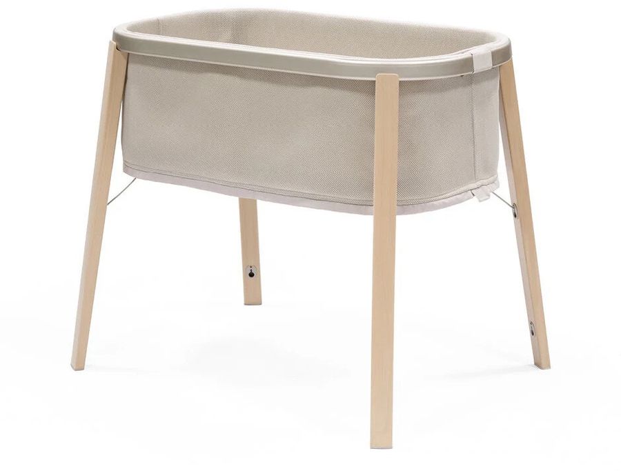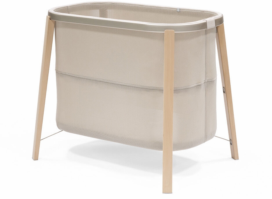Designed with premium materials including FSC®-certified wooden legs and a strong aluminum frame, Stokke® Snoozi™ also features main fabrics that are made of breathable 3D mesh materials that are gentle to the touch and machine washable. Available in two stunning neutral colors that suit any style or interior.