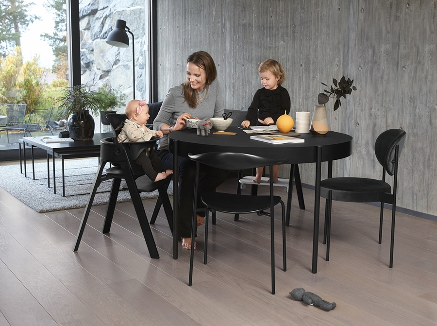 Optional accessories transform the Stokke® Steps™ Chair into a seating solution that can be used from birth with the Bouncer, bringing your newborn to the table and with the Stokke® Steps™ Baby Set to create the highchair.