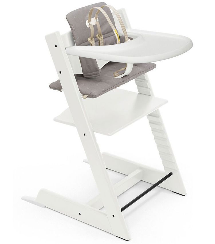 Tripp Trapp High Chair and Cushion with Stokke Tray -- White / Icon Grey