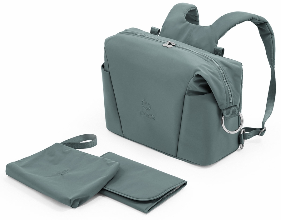 A changing bag with a twist –the Stokke® Xplory® X Changing Bag can be attached to stroller or used as a shoulder bag or backpack. Various sized pockets including a waterproof side pocket for added conveniences.