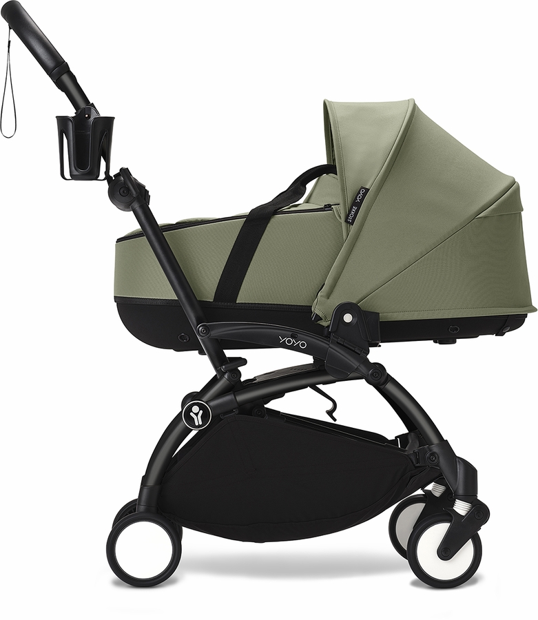 The cup holder has been specially designed for the YOYO. Very stable, it has a hook specifically designed to attach to 6 different points on the stroller frame. Keep your drinks close at hand by installing a cup holder for you and one for your baby.