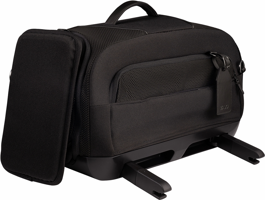 - Trolley sleeve for resting carrier on suitcase and making airport journeys a breeze.