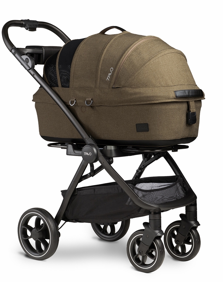 Tavo’s Maeve Pet Protection System comes with a cozy bed and carrier that connects quickly to the included vehicle base with stability leg and to our premium Roscoe stroller frame—taking your pet’s adventures inside and outside the vehicle to the next level.