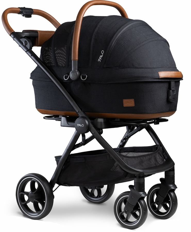 Tavo’s Maeve Pet Protection System comes with a cozy bed and carrier that connects quickly to the included vehicle base with stability leg and to our premium Roscoe stroller frame—taking your pet’s adventures inside and outside the vehicle to the next level.
