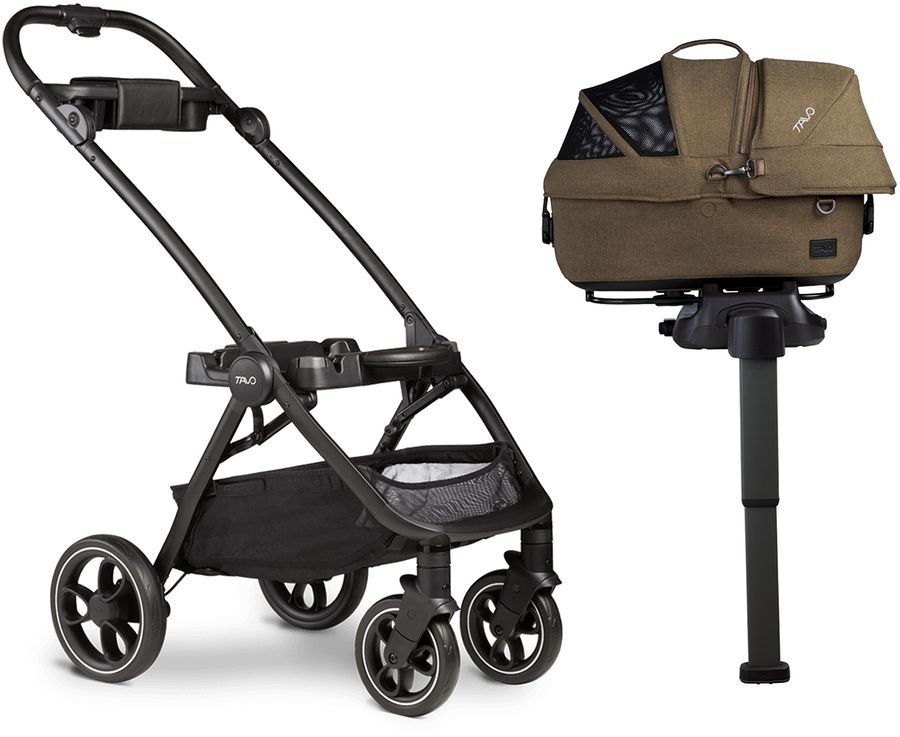 Tavo’s Maeve Pet Protection System comes with a cozy bed and carrier that connects quickly to the included vehicle base with stability leg and to our premium Roscoe stroller frame—taking your pet’s adventures inside and outside the vehicle to the next level.