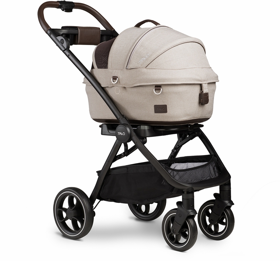 Tavo’s Maeve Pet Protection System comes with a cozy bed and carrier that connects quickly to the included vehicle base with stability leg and to our premium Roscoe stroller frame—taking your pet’s adventures inside and outside the vehicle to the next level.