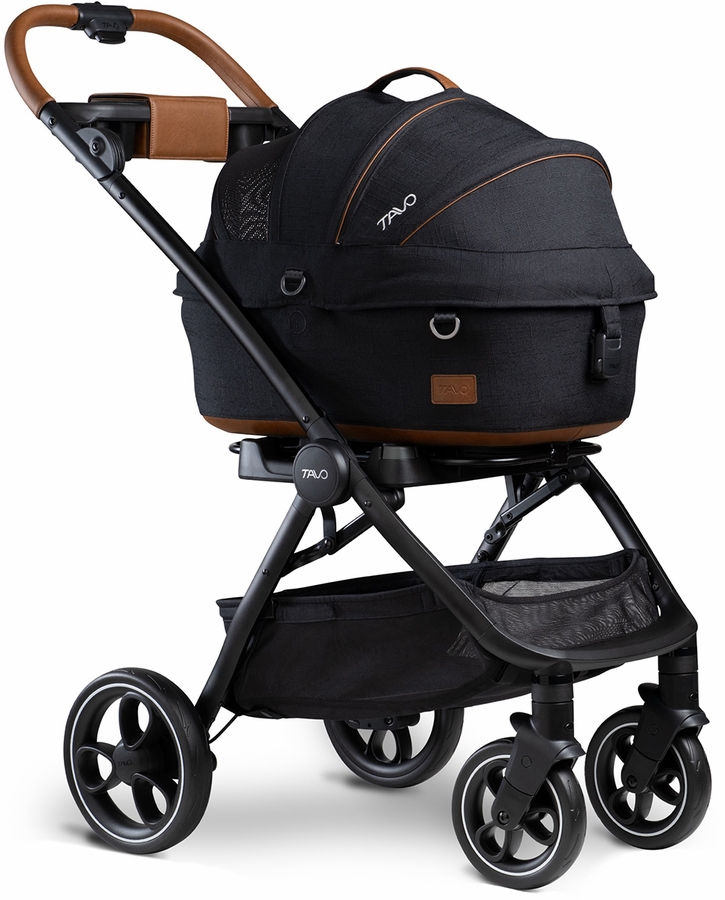 Tavo’s Maeve Pet Protection System comes with a cozy bed and carrier that connects quickly to the included vehicle base with stability leg and to our premium Roscoe stroller frame—taking your pet’s adventures inside and outside the vehicle to the next level.
