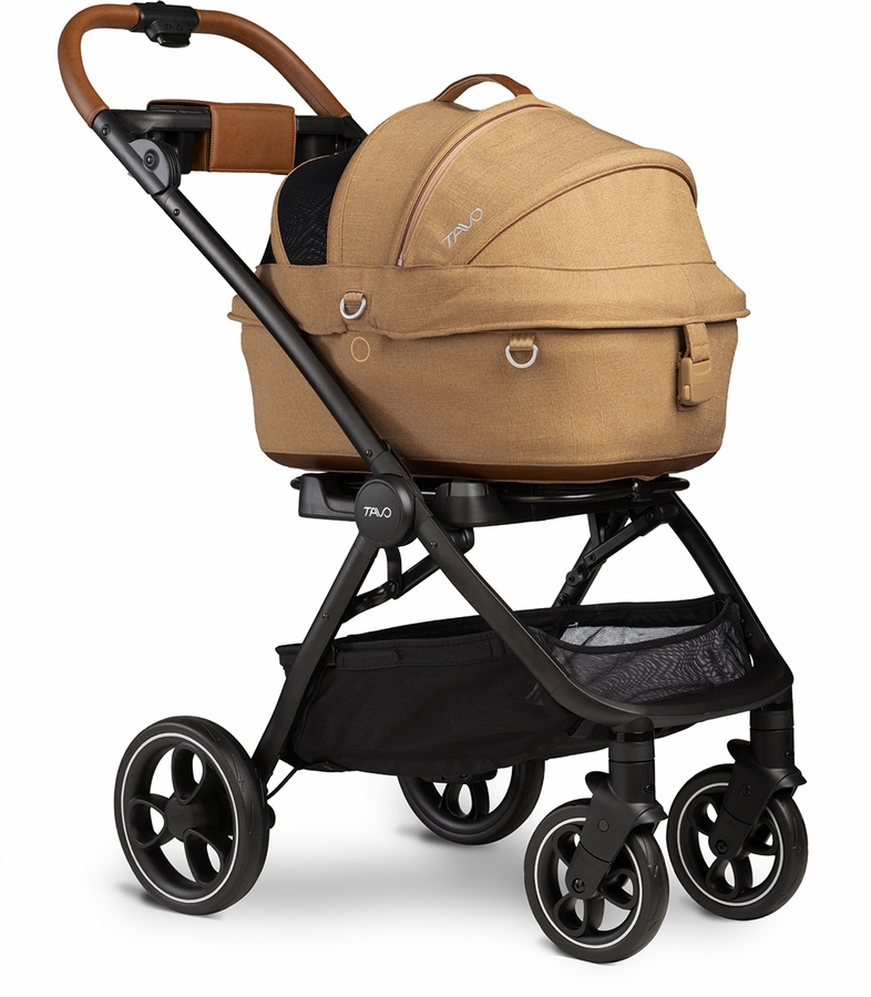 Tavo’s Maeve Pet Protection System comes with a cozy bed and carrier that connects quickly to the included vehicle base with stability leg and to our premium Roscoe stroller frame—taking your pet’s adventures inside and outside the vehicle to the next level.