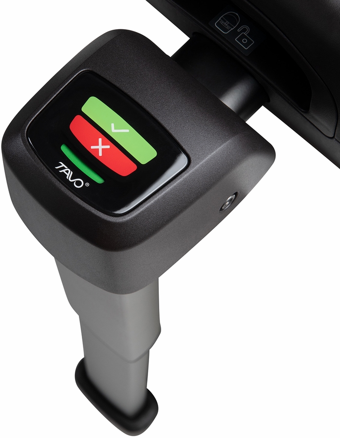 - Stability leg adjusts to the height of your vehicle seats, and an indicator turns green when properly engaged.