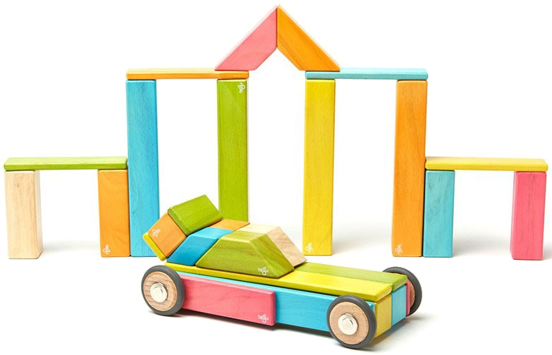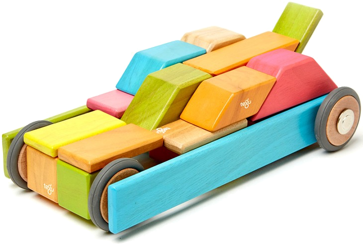 The 42-Piece Set is a large building set that allows for big and tall creations. Click wheels on and off to create any number of mobile creations.