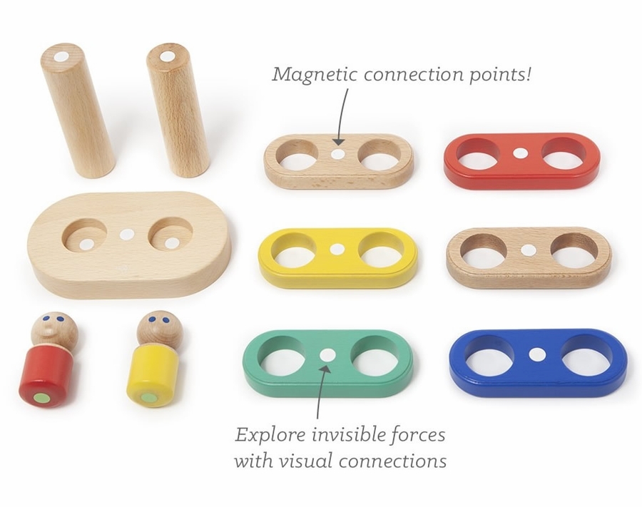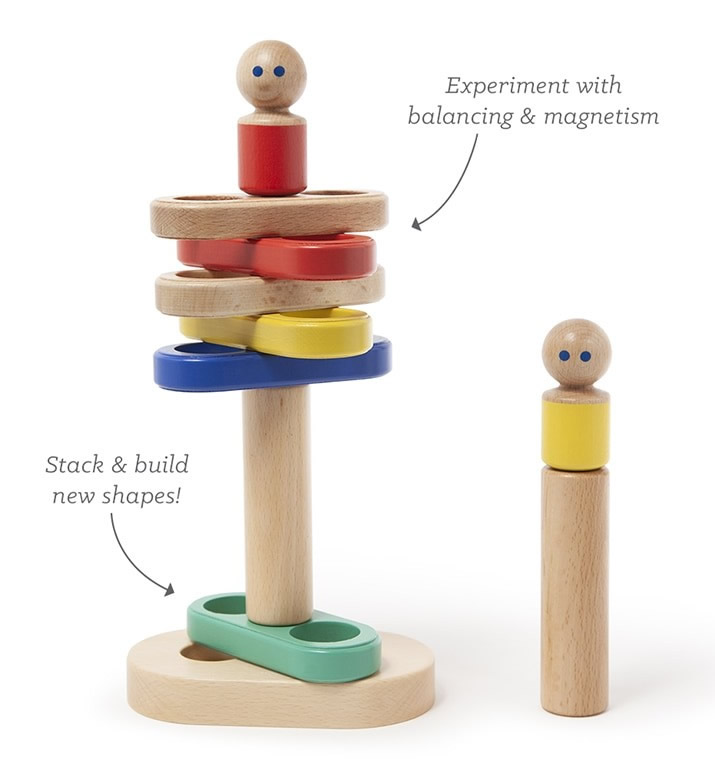 Magical forces attract and repel for unexpected stacking play. Stack pieces on their posts or flip them over to watch them defy gravity with the power of magnets! Or take it all apart for construction play ? the possibilities are endless with your imagination.