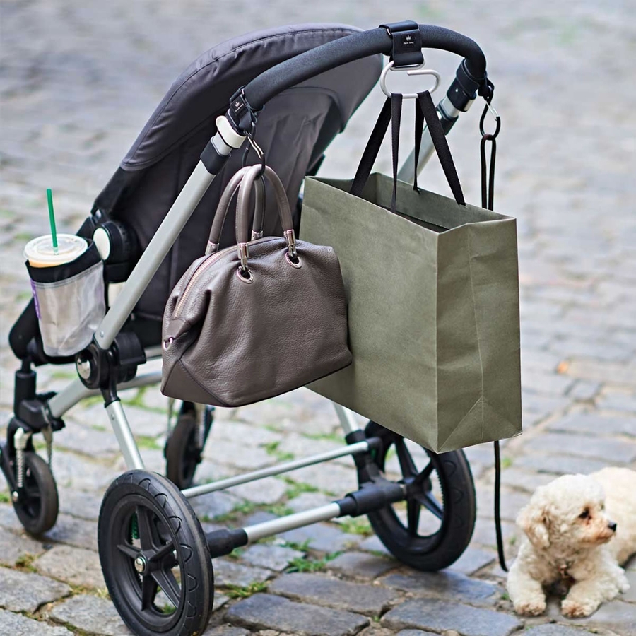 The first and only clip hook custom designed for shopping, not climbing. Its unique shape means holding the gate open is easy and items can slip on and off the hook effortlessly, just like our Mighty Buggy Hooks. The sturdy steel wire gate closes on it?s own coiled tension so there is no spring that can break.