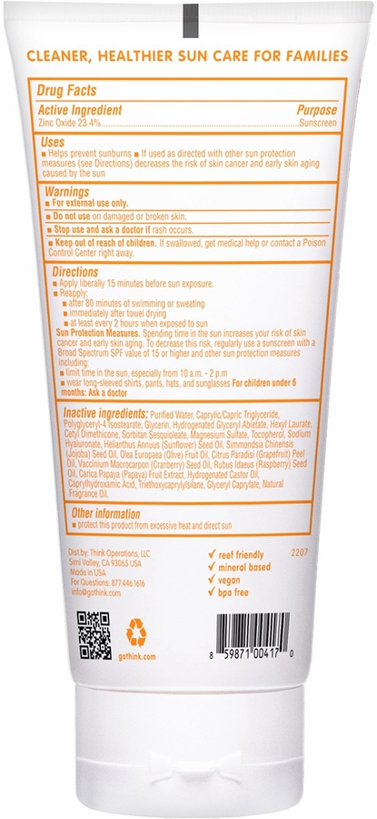 Thinkbaby and Thinksport formula applies easily and absorbs quickly. Be sure to apply all areas that will be exposed to sunlight, including behind the ears, neck, hands, feet, and scalp. Reapply every two hours or more as needed.