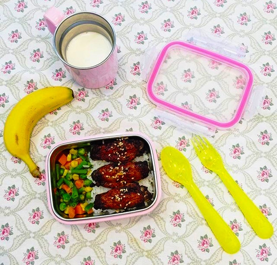 • The bento box, baby bowls, and Kids cup are made from food grade stainless steel and then wrapped in polypropylene. The interior and exterior separate for easy cleaning.