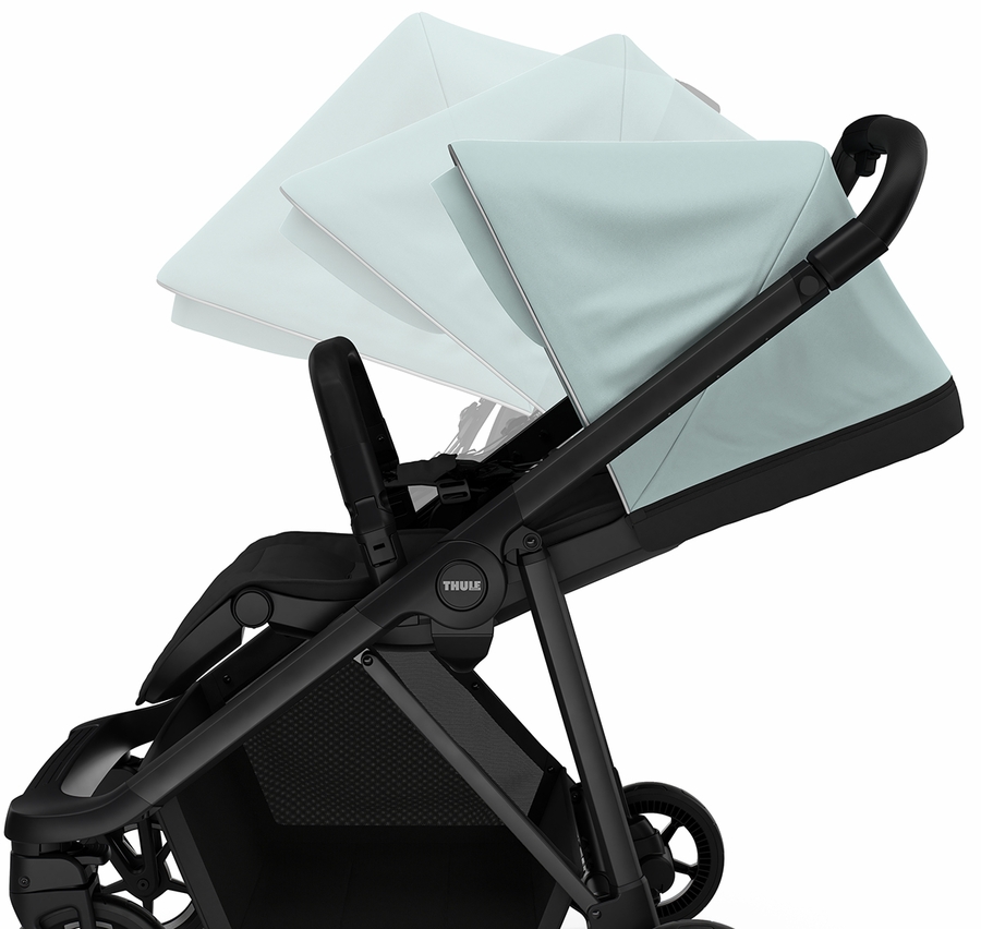 Multiple from birth accessories include Thule Shine Bassinet, Thule Newborn Inlay, Thule Newborn Nest, Thule Shine Infant Car Seat Adapter. (accessories sold separately)
