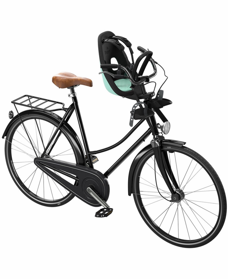 Lightweight and stylish front-mounted child bike seat with smart design for rides around town.