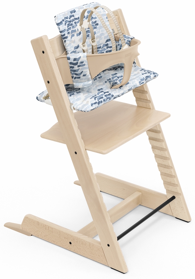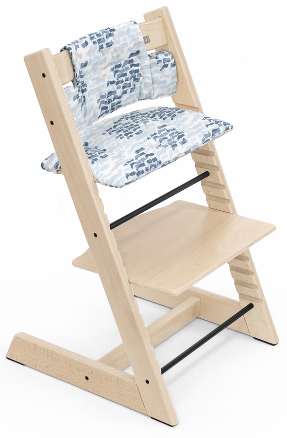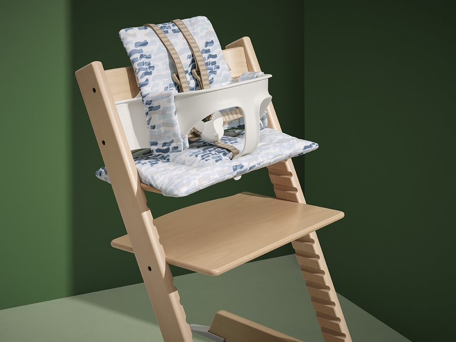 The Tripp Trapp® cushion. It provides a cozy seat by adding lush comfort and support to your child. Made to accompany the Tripp Trapp Baby Set, this cushion will keep baby comfy and happy for every meal. 100% polyester materials are machine washable for easy clean up. Suitable for 6 months to 3 years.