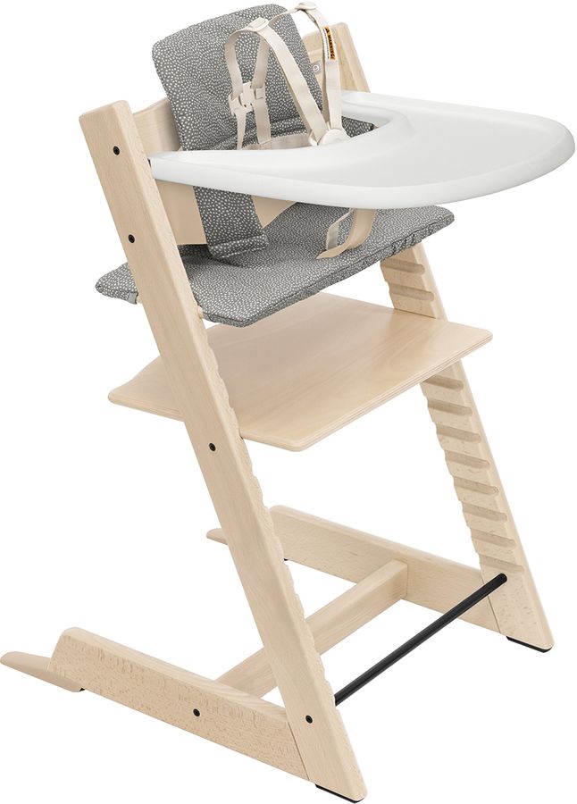 Tripp Trapp High Chair2 and Cushion with Stokke Tray - Natural / Dots Grey