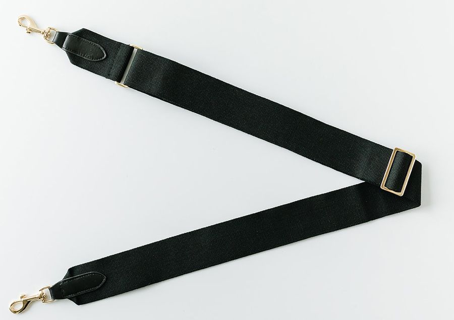 - Material: Nylon webbing / vegan leather tabs / gold snap hooks