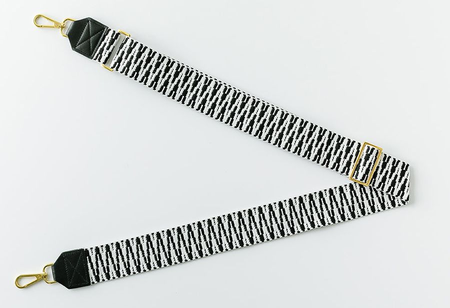 • Material: Nylon webbing / vegan leather tabs / gold snap hooks