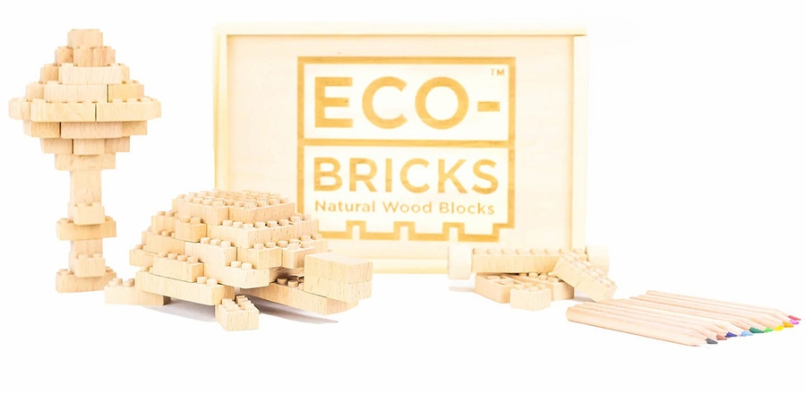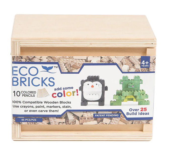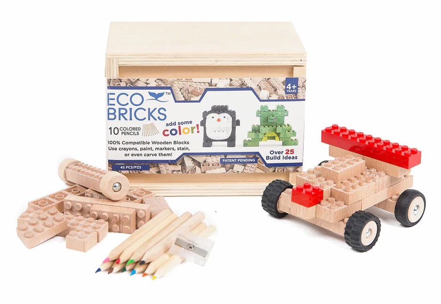 Durable, beautifully crafted, and even compatible with most of the other major interlocking block brands (so you don't have to start your whole collection all over again), the Eco-Bricks™ 45-Piece set is a brilliant alternative to plastic block construction.