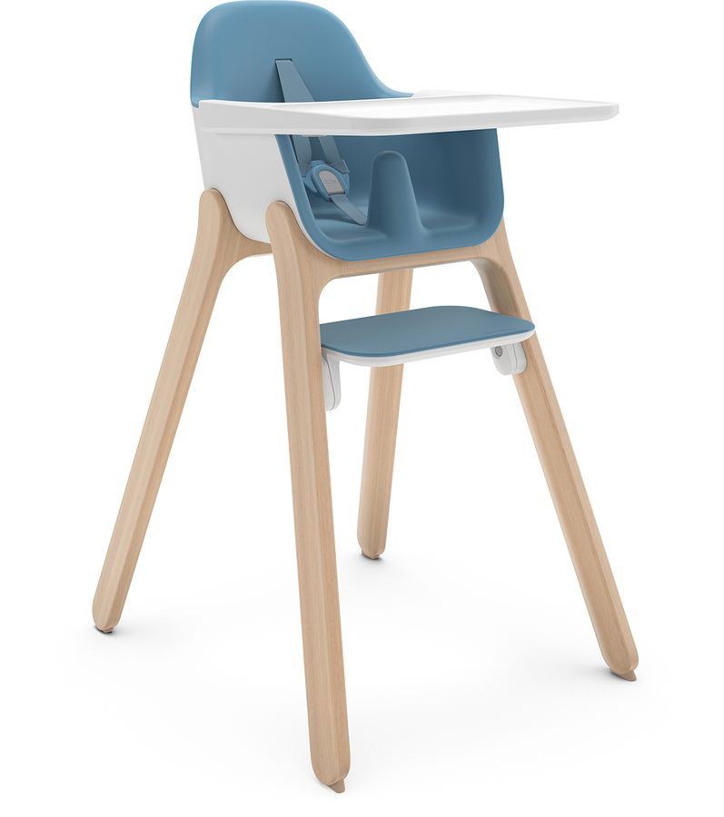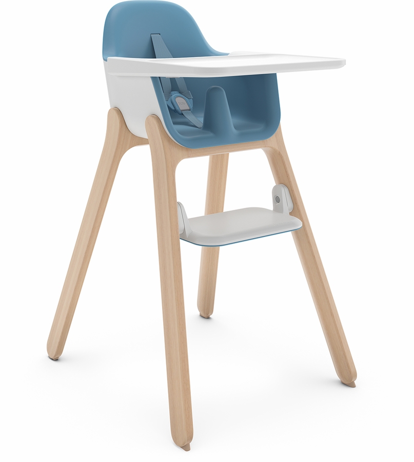 The Ciro High Chair has a sleek design, unique harness that adjusts with the push of a button (in the back) and an adjustable tray that’s slightly higher, allowing it to extend over the dining table so baby is closer. The dual-position rotating footrest starts at a higher position and then flips over to a lower position as they grow. The seam-free seat and food-friendly harness also make it easy to clean.