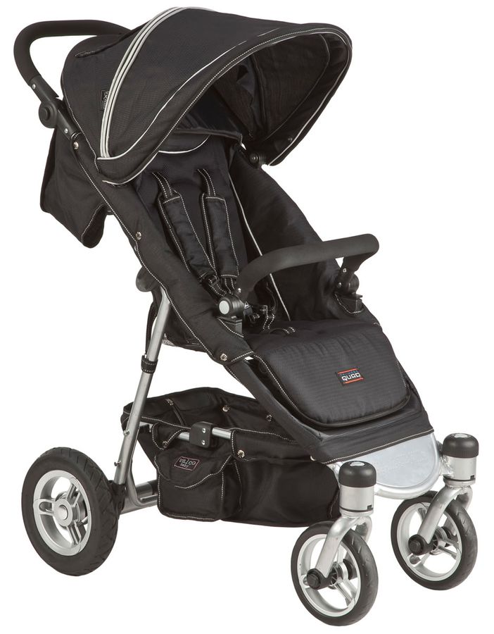 The compact and stylish Quad ushers in a new category in conventional prams and strollers. As a "hybrid" unit, the Quad incorporates the best features found in many three wheel all terrain strollers in a compact and dependable four wheel unit. Equally at home in both urban and rural settings, the dual swivel wheels and pneumatic rear tires provide effortless motion over most surfaces. And the virtually unlimited reclining seat system and additional accessories of the Quad, guarantee a blissful experience for your infant and their siblings too.