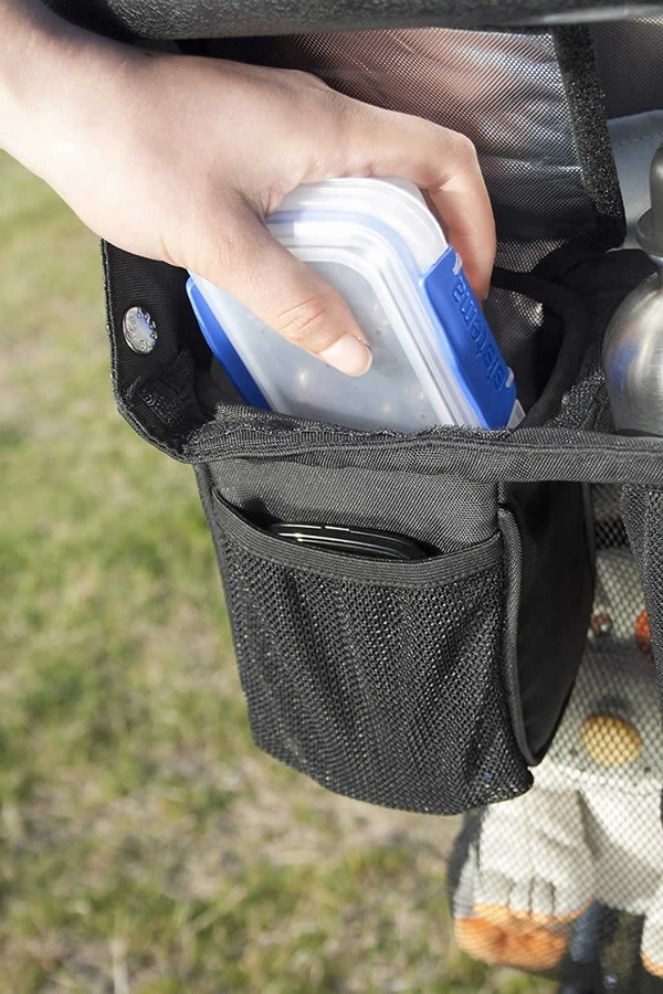 The Stroller Caddy is the newest innovative universal accessory from Valco Baby. It features two large insulated pockets to keep food or drink bottles cool or hot as well as two bonus Freezer Gel Packs, which fit neatly at the bottom of each insulated pocket. There is also a central mesh pocket for a drink bottle, a little mesh pocket for small items such as house keys or mobile and a generous mesh net bag great for larger items. Compatible with most single and twin stroller. List of compatible Valco strollers: single and twin tri mode, single and twin zee, single and twin spark and single snap and Snap 4. This accessory is universal and will fit on most prams and strollers.