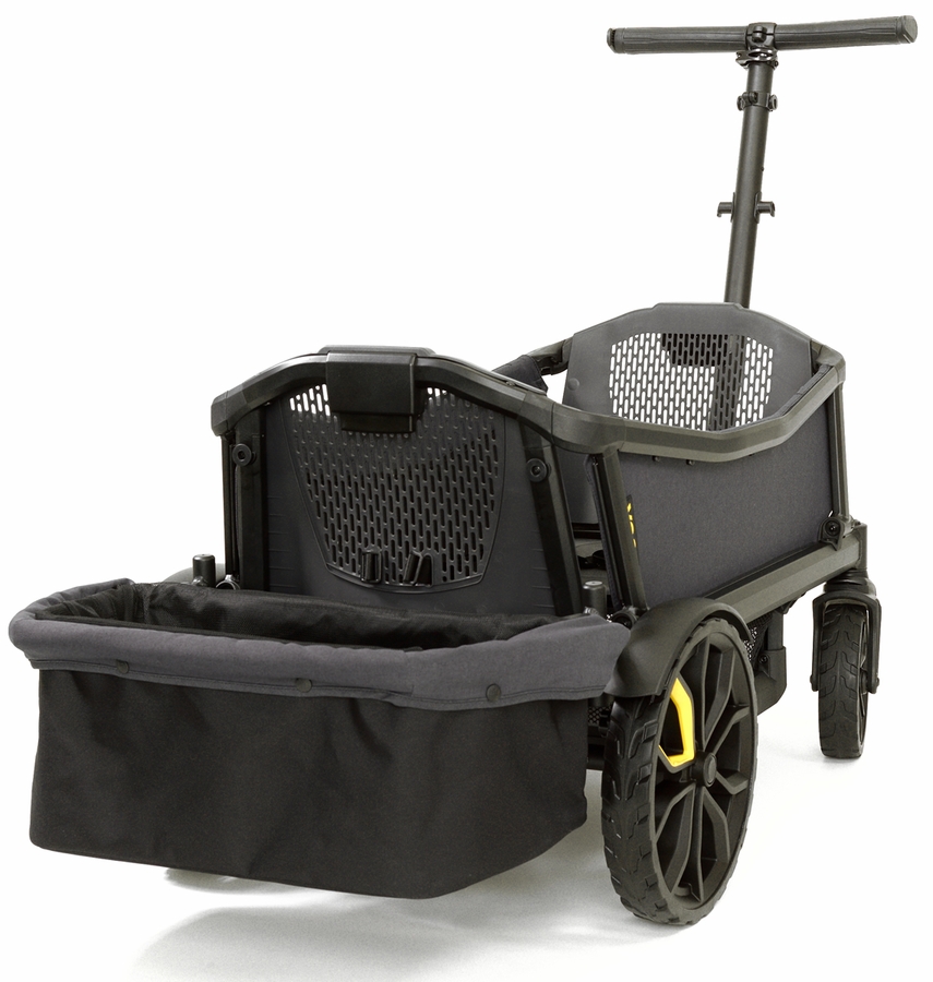 Designed to add even more cargo space to the Cruiser, our lightweight aluminum and soft-sided storage basket mounts solidly into the Cruiser?s two anchor points behind the rear seat. It folds for easy transport or storage without removal. The soft sided construction is removable and machine washable. A zipper hood either discreetly rests on the bottom of the basket or doubles the capacity by covering clothes and other bulky items. Drink and Snack Tray and Napper both fit comfortably in this accessory.