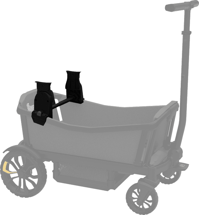 Veer Cruiser infant car seat adapters for major brands of infant car seats quickly and intuitively fasten to the Cruiser?s frame, enabling infants to live the Veer experience. You may place your car seat in any of four positions: facing you, facing the outside world, and above the front or back seat of Cruiser.
