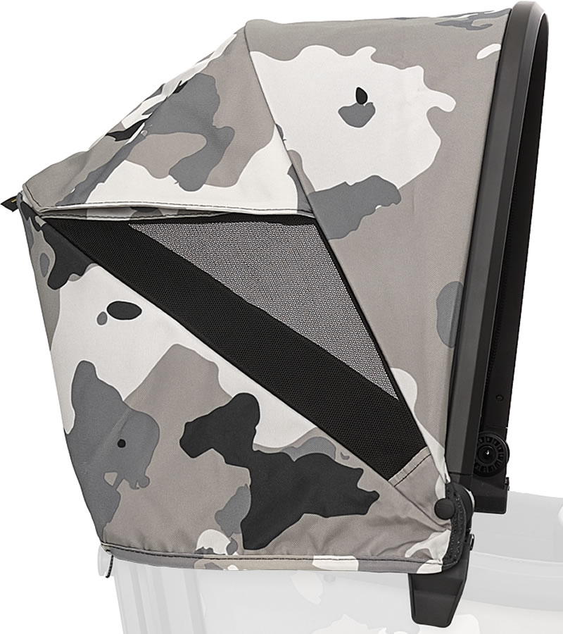 The Retractable Canopy for Cruiser quickly and intuitively clips onto Cruiser’s frame and easily extends up and down. One or two can be attached, above either seat. A peak-a-boo window allows you to see your precious cargo and discreet, hidden magnets hold the window in the up position. Canopy works with Nap System to create the perfect rest stop for young ones, or with Bug Shield to add insect protection. A zip-on visor is available for extended coverage.