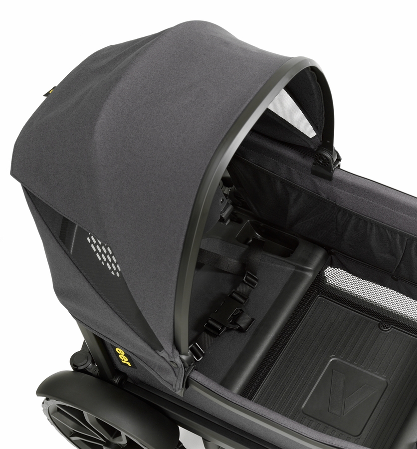 The Retractable Canopy for Cruiser quickly and intuitively clips onto Cruiser’s frame and easily extends up and down. One or two can be attached, above either seat. A peak-a-boo window allows you to see your precious cargo and discreet, hidden magnets hold the window in the up position. Canopy works with Nap System to create the perfect rest stop for young ones, or with Bug Shield to add insect protection. A zip-on visor is available for extended coverage.