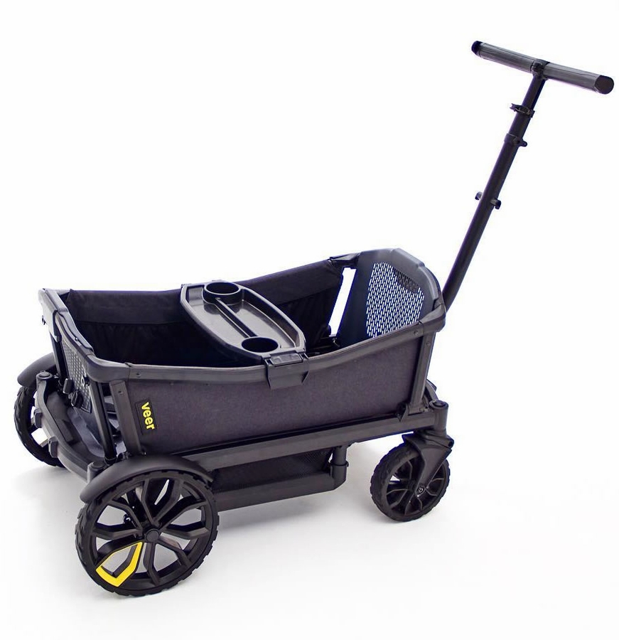 A completely new concept, the Veer All-Terrain Cruiser is the first-ever crossover. It defies conventional labels by combining the functionality and safety of a premium stroller with the classic fun and practicality of a wagon. It is built to last for ages 0-5+ yrs and beyond. Cruiser can be pushed or pulled, or pulled alongside. It has two built in seats with 3-point harnesses for toddler comfort and safety, and a collapsible foot-well for ergonomic seating. It is maneuverable, adaptive, rugged, safe and mobile.