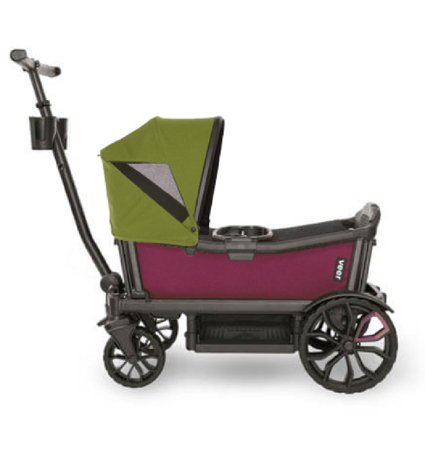 A completely new concept, the Veer All-Terrain Cruiser is the first-ever crossover. It defies conventional labels by combining the functionality and safety of a premium stroller with the classic fun and practicality of a wagon. It is built to last for ages 0-5+ yrs and beyond. Cruiser can be pushed or pulled, or pulled alongside. It has two built in seats with 3-point harnesses for toddler comfort and safety, and a collapsible foot-well for ergonomic seating. It is maneuverable, adaptive, rugged, safe and mobile.
