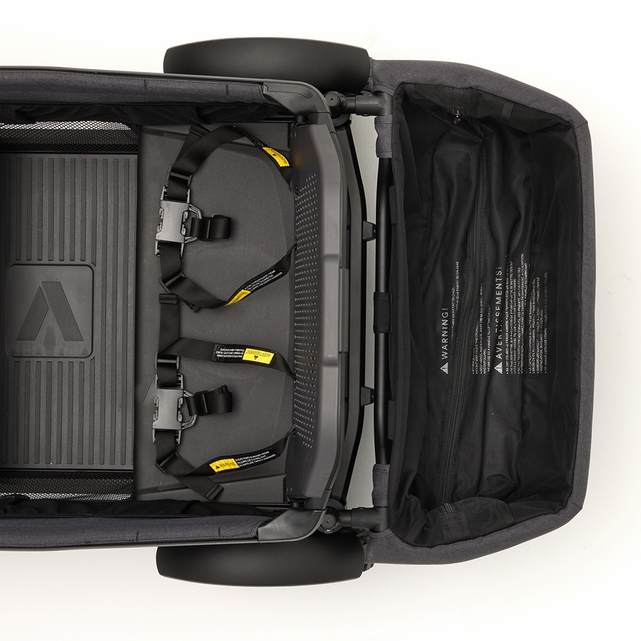 Designed to add even more cargo space to the Cruiser XL, our lightweight aluminum and soft-sided storage basket mounts solidly into the Cruiser XL’s two anchor points behind the rear seat. It folds for easy transport or storage without removal. The soft sided construction is removable and machine washable. A mesh zipper hood either discreetly rests on the bottom of the basket or doubles the capacity by covering clothes and other bulky items. Drink and Snack Tray and Napper both fit comfortably in this accessory.