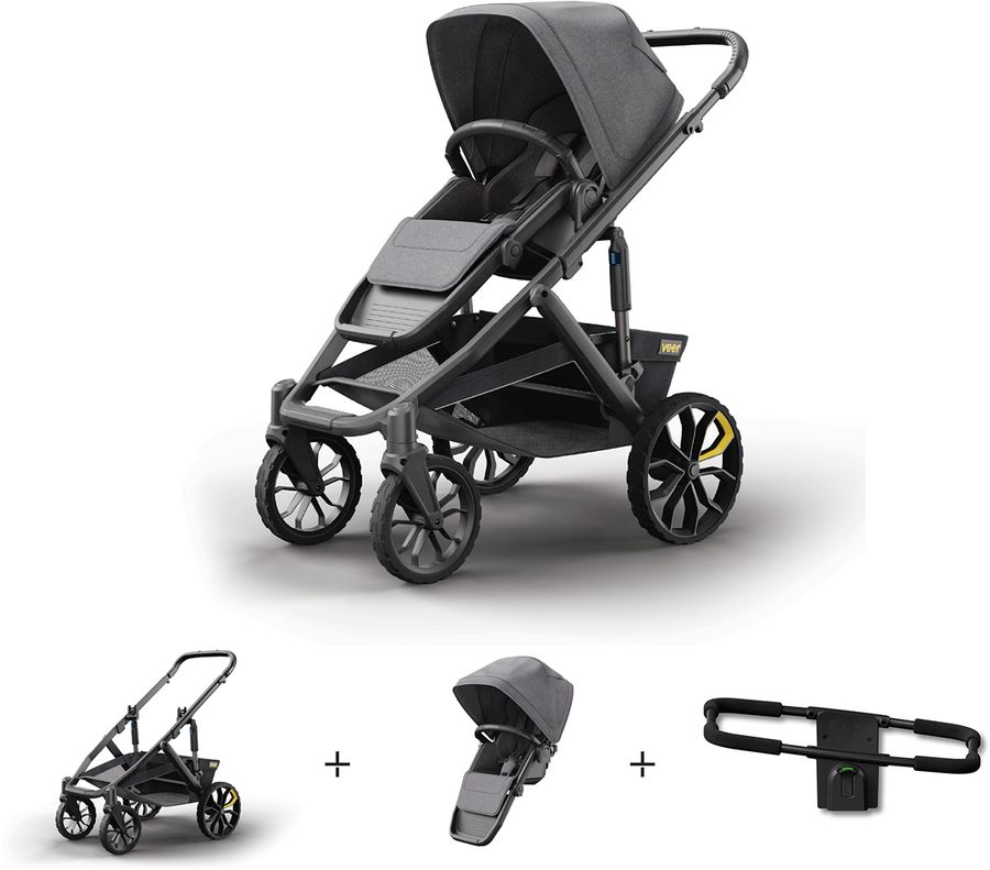 The revolutionary Switchback Seat is designed for any Veer frame so you can stroll, jog, bike or chill with one click from birth on. Easy clean, cushy softgoods, bump absorbing dampers and on-demand shade make for the most comfortable ride.