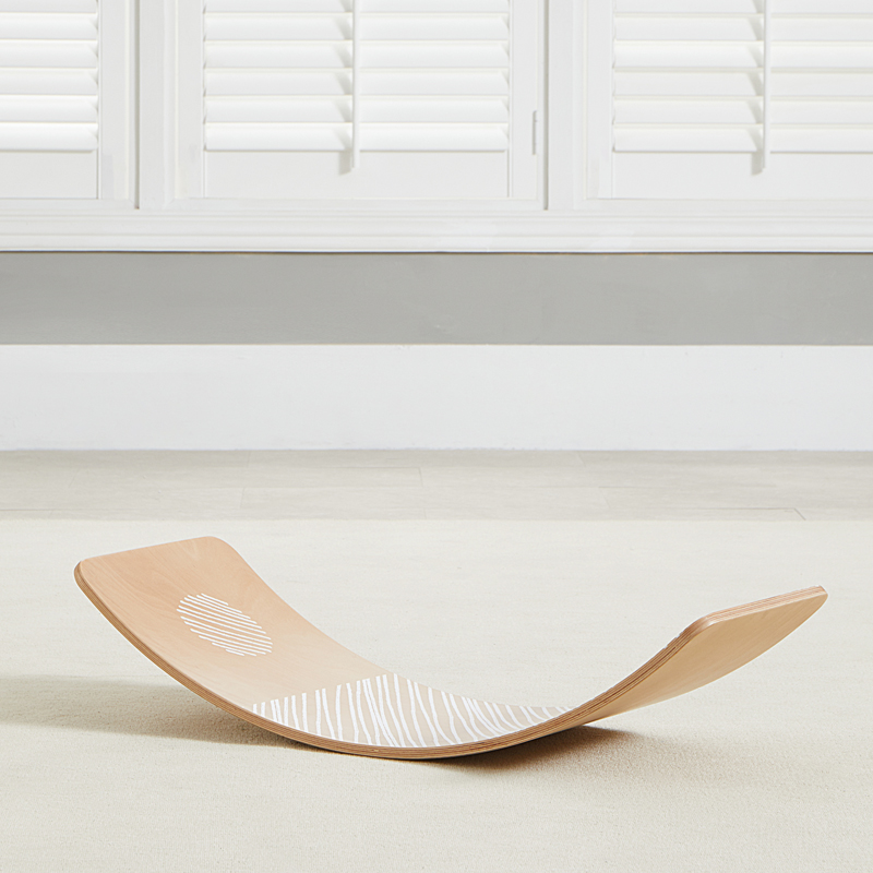 Find the right balance with our Balance Board! Our board uses 11 layers of birch and beech, and is adorned with a cool pattern using water-based, non-toxic paint. Our sturdy, high quality board holds up to 170 lbs. Turn it upside down and use as a ramp for toy vehicles. It can even be used for your little reader as a reading nook. Steady, now!