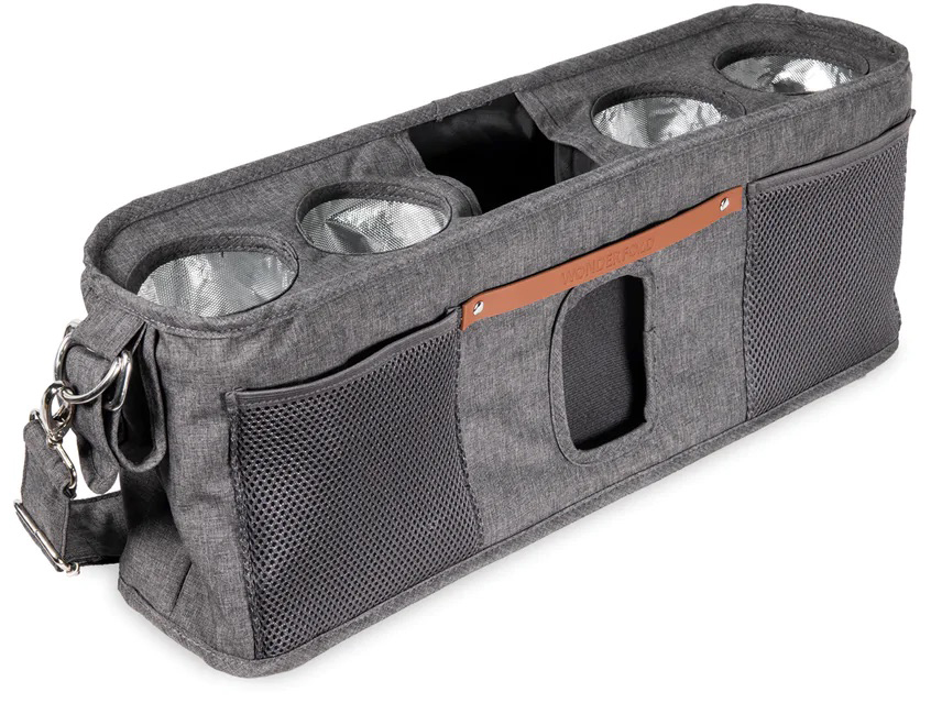 WonderFold Large Parent Console with 4 Insulated Cup Holders - Gray