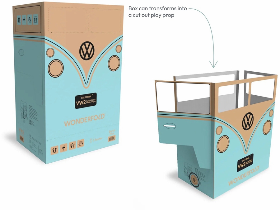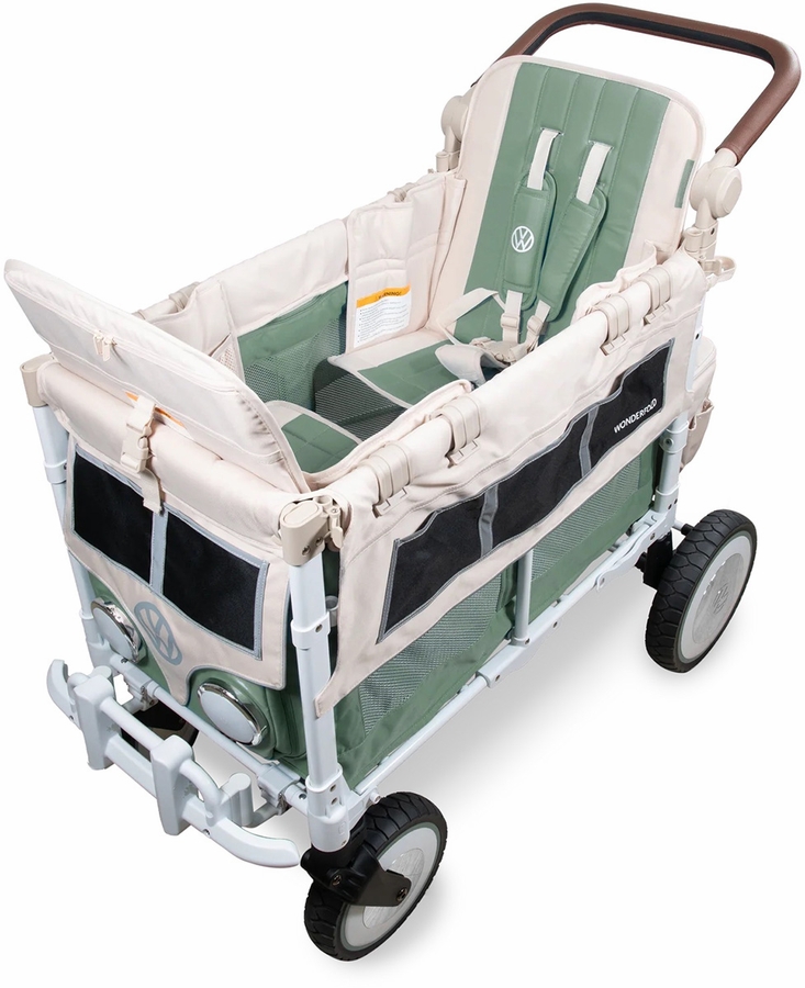 Stroller wagons just got a little more groovy. Inspired by the vintage VW bus, our new special edition stroller wagon will fulfill your nostalgic fantasies with all those classic WonderFold elements. It includes features like the classic VW bumper, functioning headlights, and retro all-terrain XL wheels!