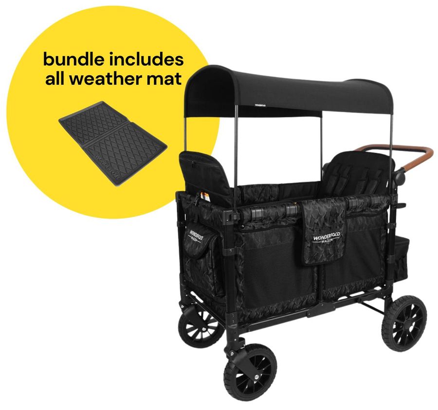 WonderFold W4 Luxe Multifunctional Quad (4 Seater) Stroller Wagon + All Weather Mat Bundle - Black Camo